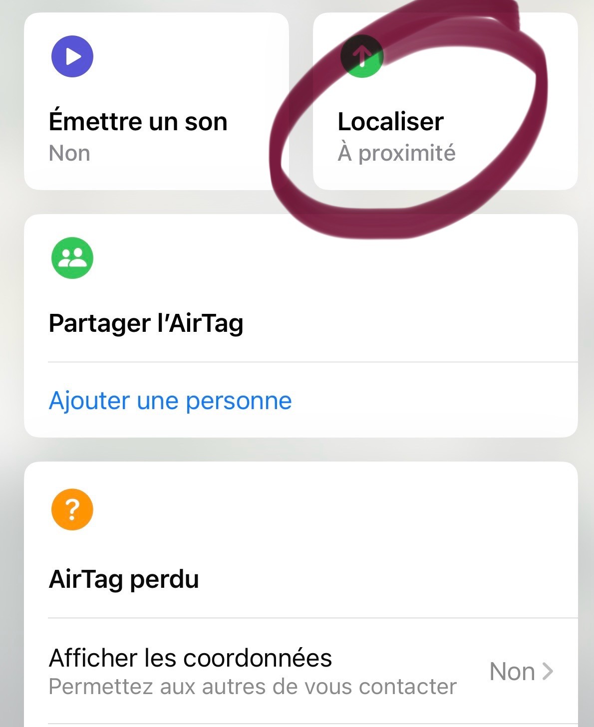 4 Airtag d'occasion à 25 balles ? Euh... question simple avec ces AirTags : sur ceux que vous avez réussi à configurer, quand vous êtes dans l'app Localiser, vous avez l'option Localiser A proximité ?