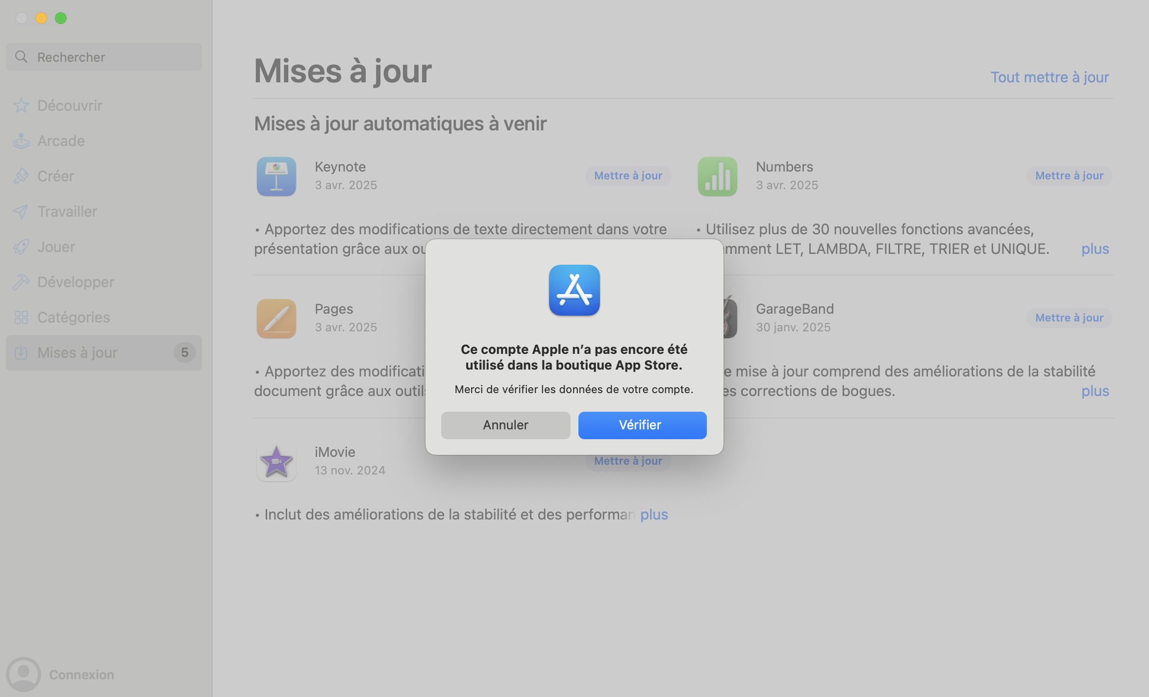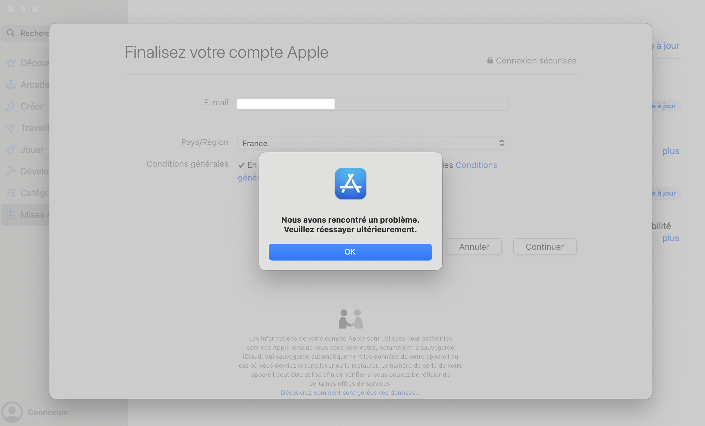 Message d'erreur connexion App Store Mac