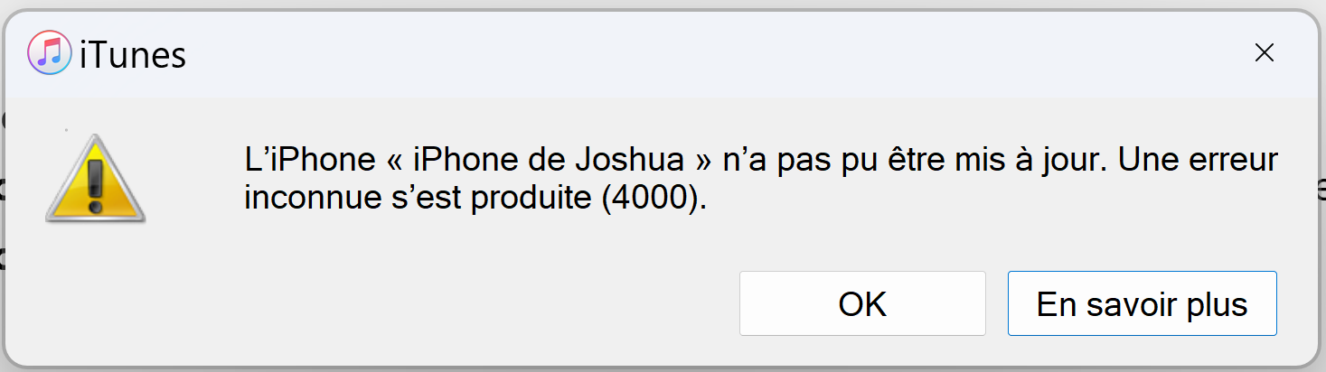 J'ai donc essayé avec iTunes depuis mon PC Windows mais ça ne marche toujours pas.