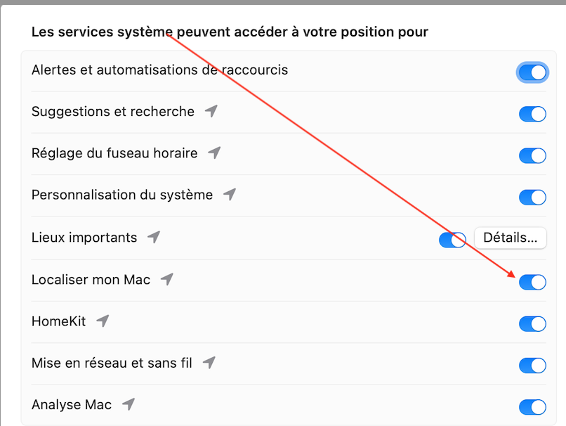 configurer la localisation de mon mac
