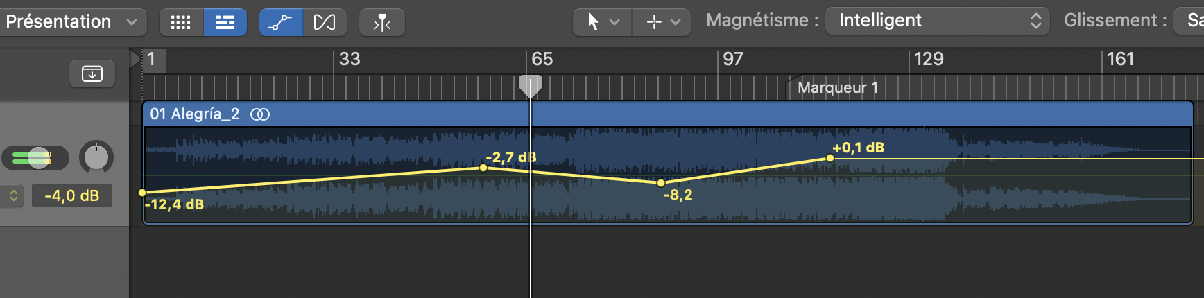 Je souhaite agir sur la piste audio avec des automations de niveau sonore