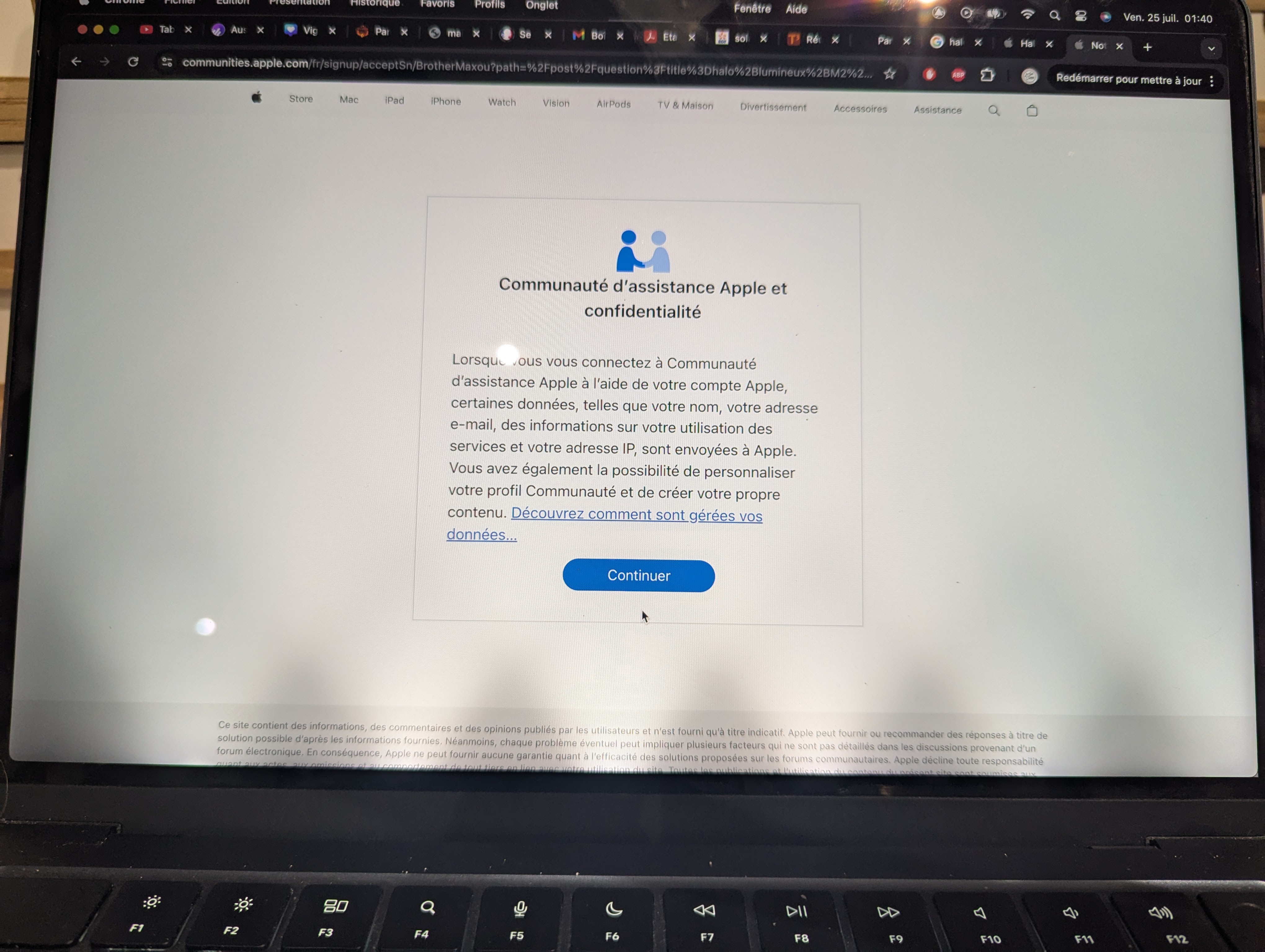 Mon écran de MacBook air M2 semble avoir un gros problème, la luminosité est très diminuée et des "projecteurs" de lumière blanche sont apparus par le bas. Un appui tactile sur le chassis de la machine ne fait pas varier cette lumière.