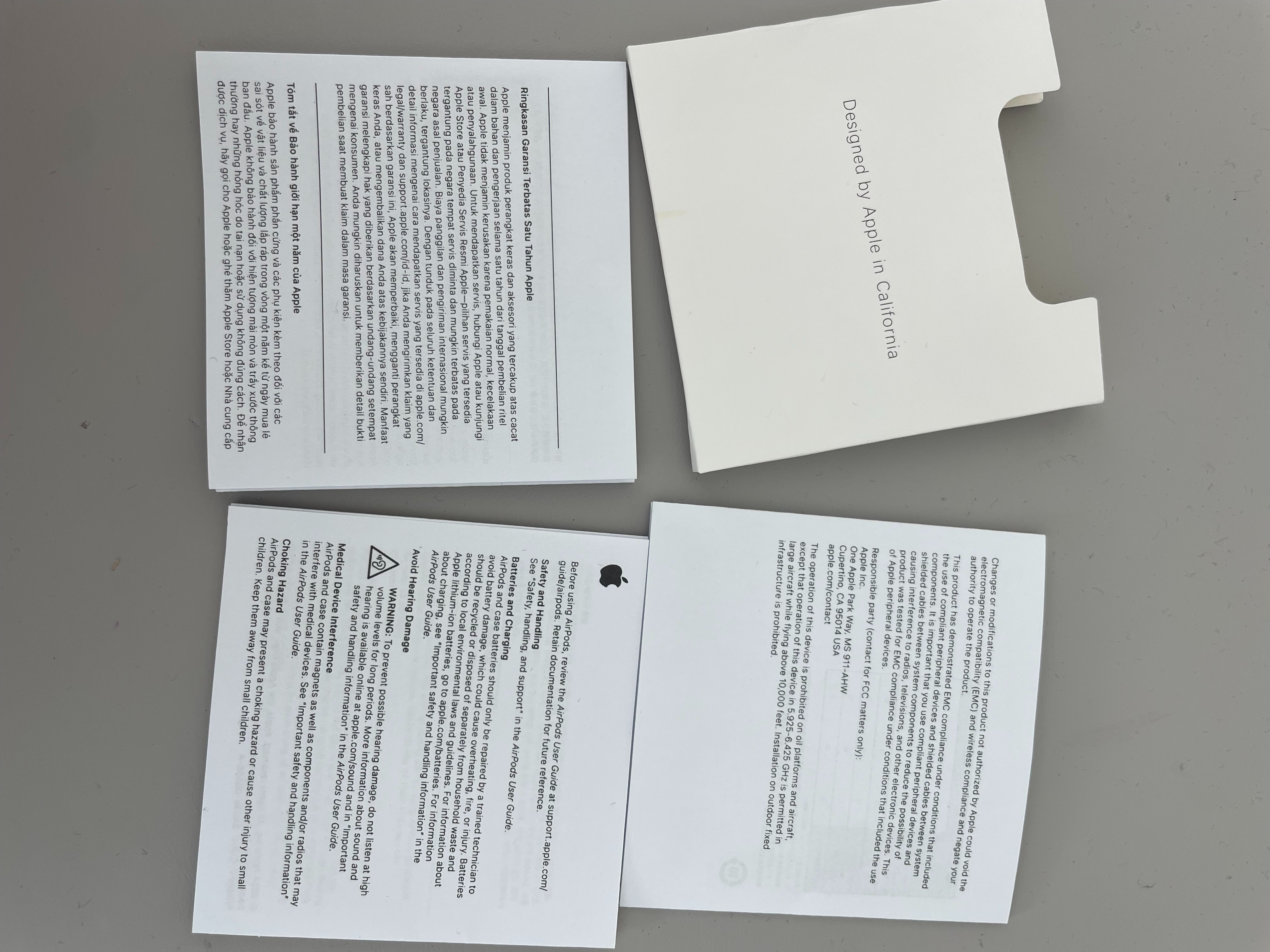 Bonjour, j'ai acheté des AirPods 4 avec réduction de bruit sur Vinted, j'ai demandé beaucoup de preuves pour me certifier que c'était des vrais, tout m'a été envoyé donc j'étais à peu près confiante (seul le prix semblait bizarre puisque je les ai eu à 75€). En les recevant, j'ai fait beaucoup de recherches, lu beaucoup d'articles pour comparer les vrais aux faux, et je ne sais pas du tout en tirer de conclusion. Ce qui me fait penser que ce sont des faux c'est tout d'abord les notices carrées et en chinois (voir photos), ensuite l'écriture "AirPods Active Noise Cancellation" sur la boîte me paraît trop épaisse (voir photos), l'ANC ne semble pas fonctionner je ne vois pas de différence et enfin l'étiquette sur la boîte paraît également anormale. Pourtant, le numéro de série existe bien, c'est le même sur la boite et les écouteurs, il y a bien les sons quand j'ouvre l'étui de chargement, quand je mets les écouteurs, quand ils n'ont plus de batterie, il y a également la fenêtre pop-up qui apparaît quand j'ouvre l'étui, etc. Donc soit ce sont des faux mais très bien faits, soit ce sont des vrais et je pense mal. Merci d'avance !