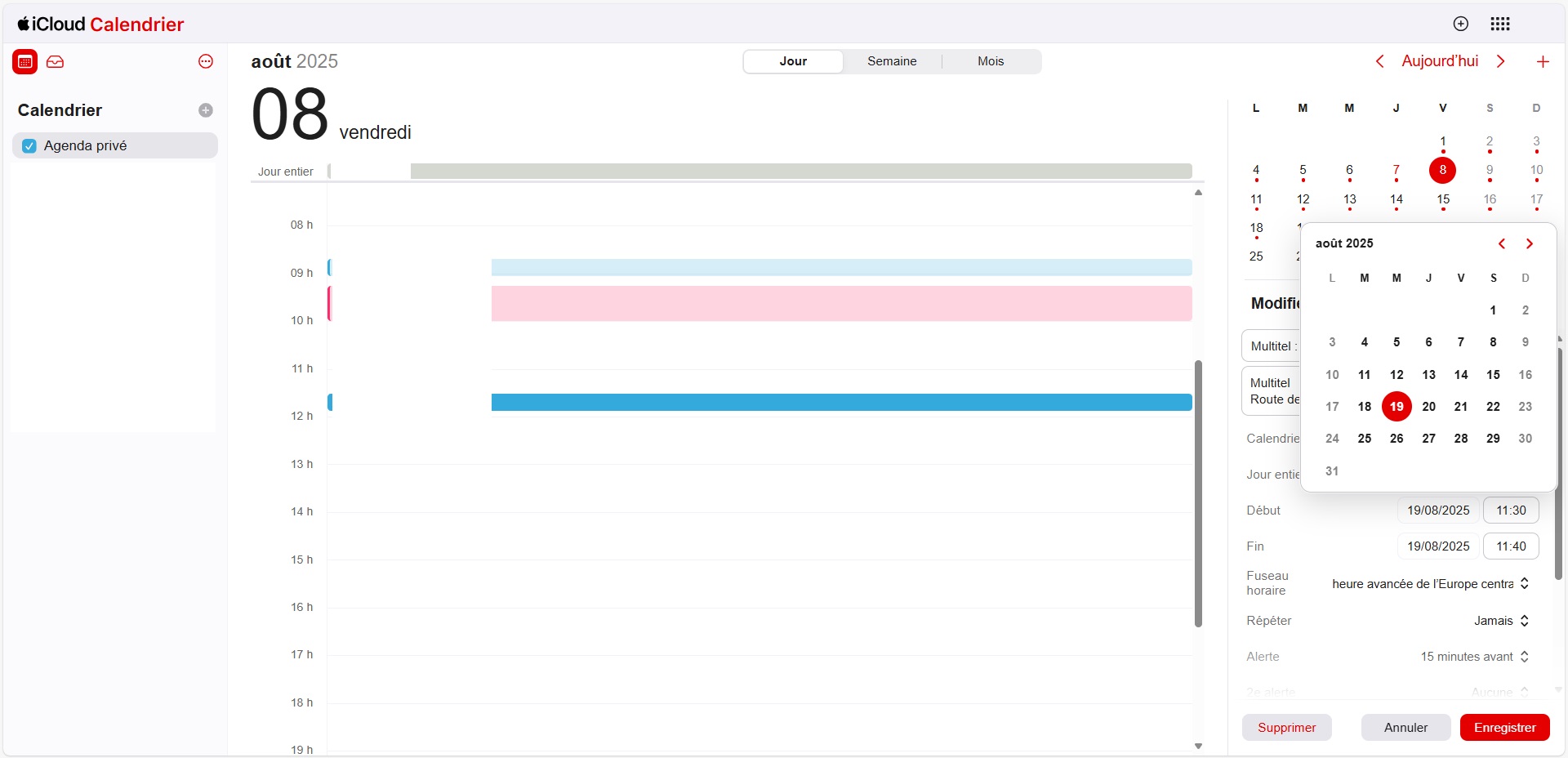 iCloud+ : bug d'agenda