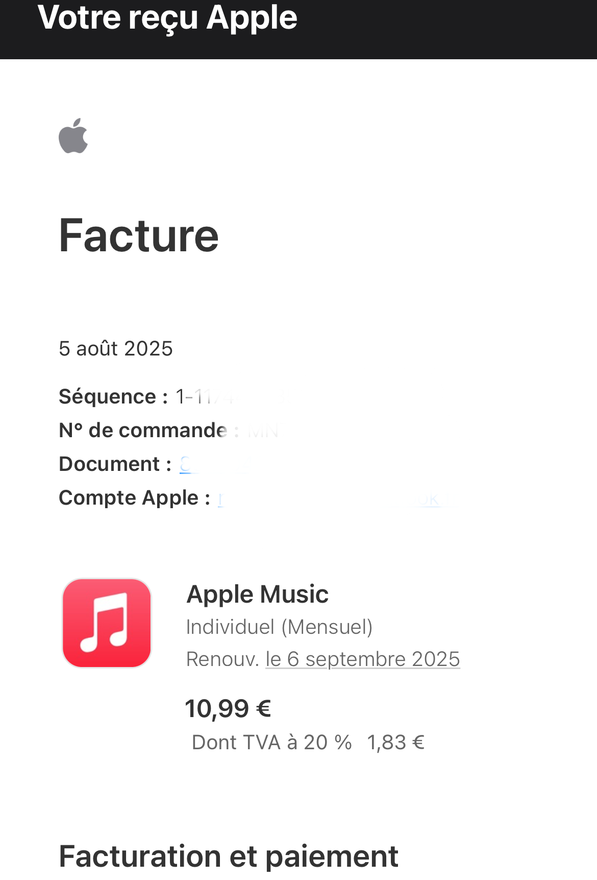 Comment je peux obtenir une facture d'un abonnement d'application souscrit via Apple Store ?