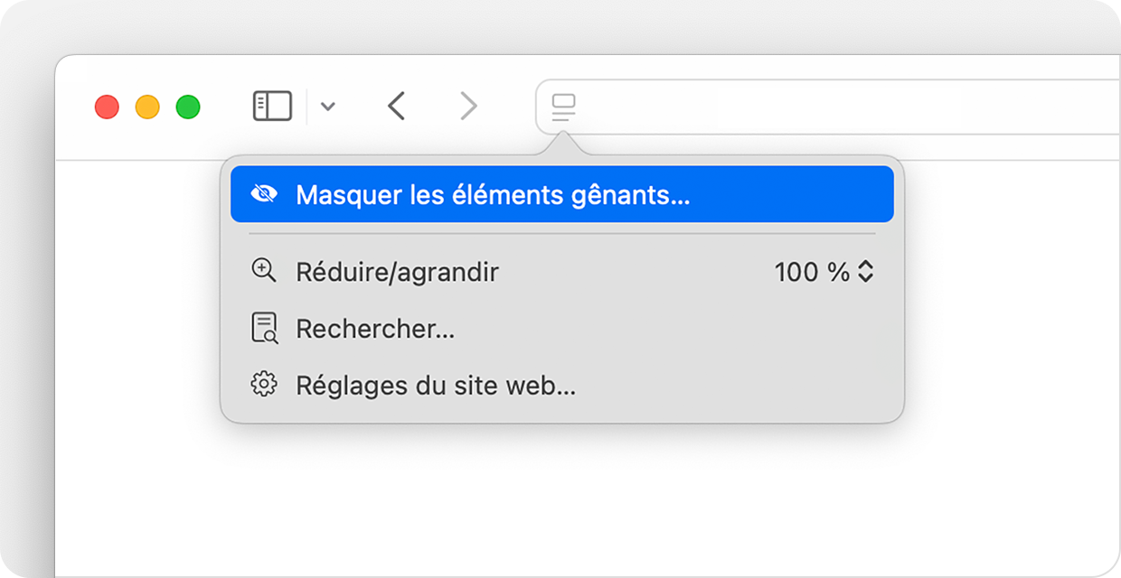 Accès menu page Safari Mac