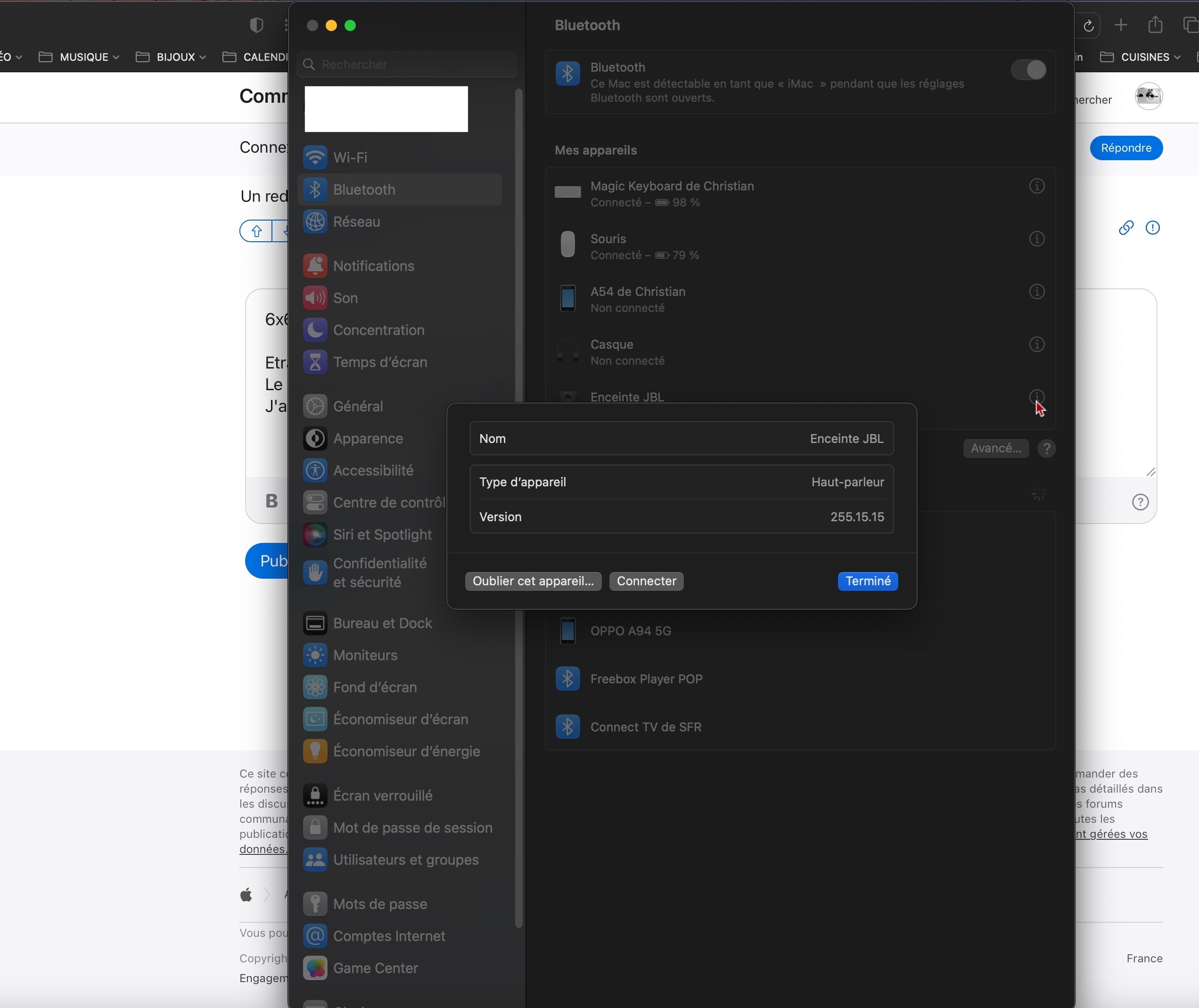 Depuis quelques jours, j'ai un problème de connexion entre la sortie son dans safari et mon enceinte JBL Charge 2 ?