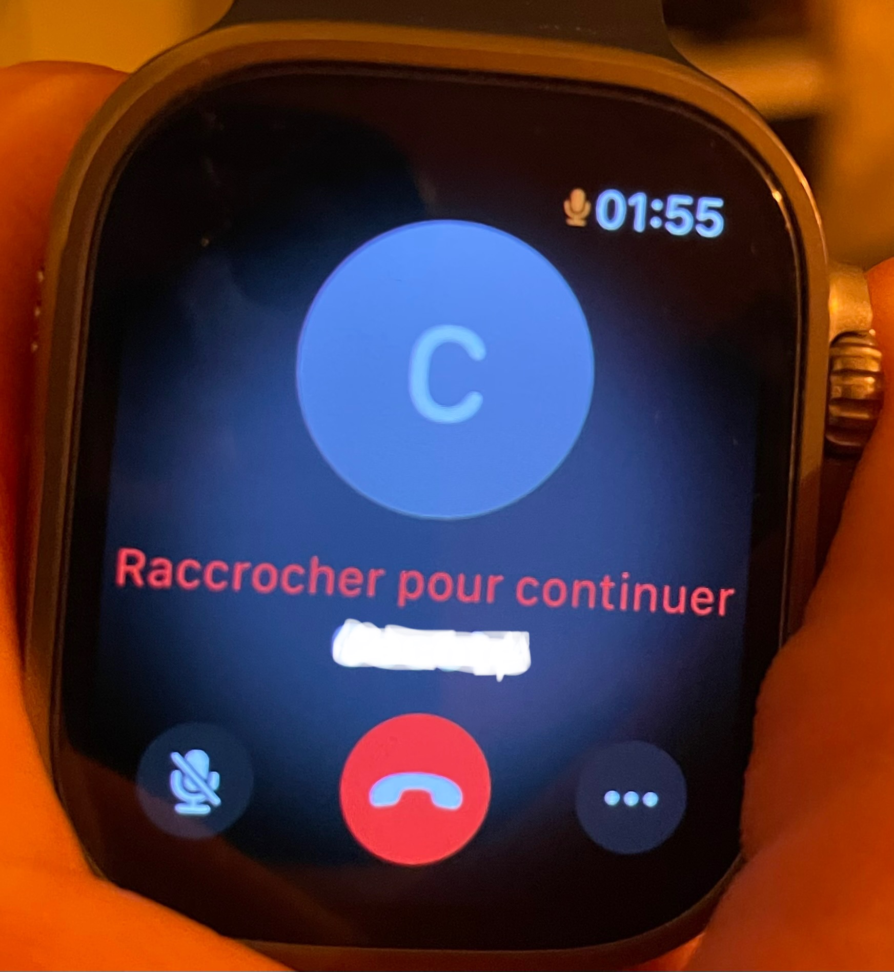 Bonjour, lors d’un footing j’ai reçu un appel téléphonique qui nécessitait la mise en pause de mon exercice sur mon Apple Watch ultra 2. Malgré plusieurs tentatives ce n’est qu’une fois l’appel terminé que j’ai pu accéder à l’application. Lors de mes tentatives le message "Raccrocher pour continuer" s’affichait. Cette limitation étant plus que curieux pour une montre de cette facture. Pouvez-vous me dire ce qu’il en est ?