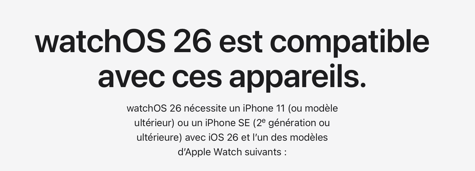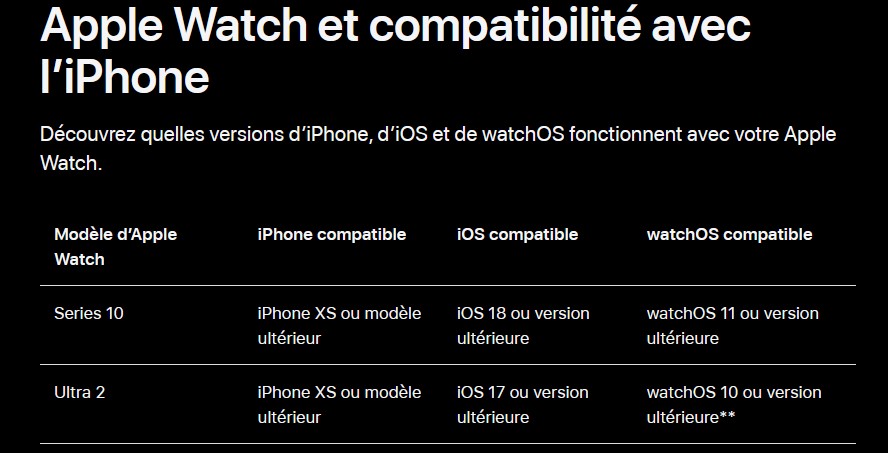 Bonjour, il m’est impossible de mettre à jour ma Watch Ultra 2 avec un IPhone Xs. La compatibilité est pourtant reconnue par Apple. Mon IPhone est passé à la version 18.7 non compatible IOS 26. Lors de ma demande dans l’application Watch de rechercher un mise à jour, on me demande mettre à jour mon IPhone alors que la mise à jour vient d’être faite. Merci