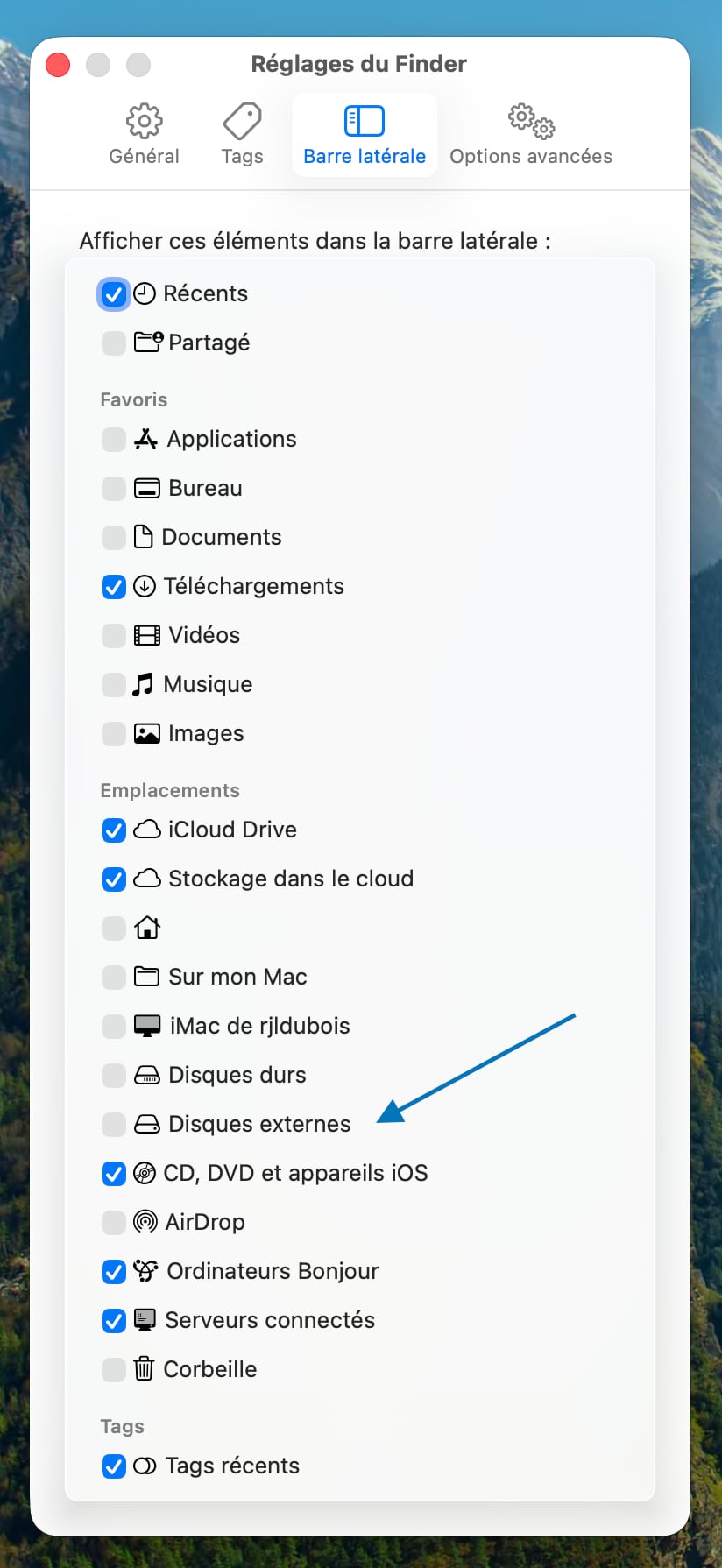 Quand je connecte une clé USB, elle n’apparait pas dans le finder. Même problème avec ma liseuse Kobo. Jusque’ici tout fonctionnait bien. La clé et la liseuse fonctionnent sans problème sur mon iPhone (iOS26).