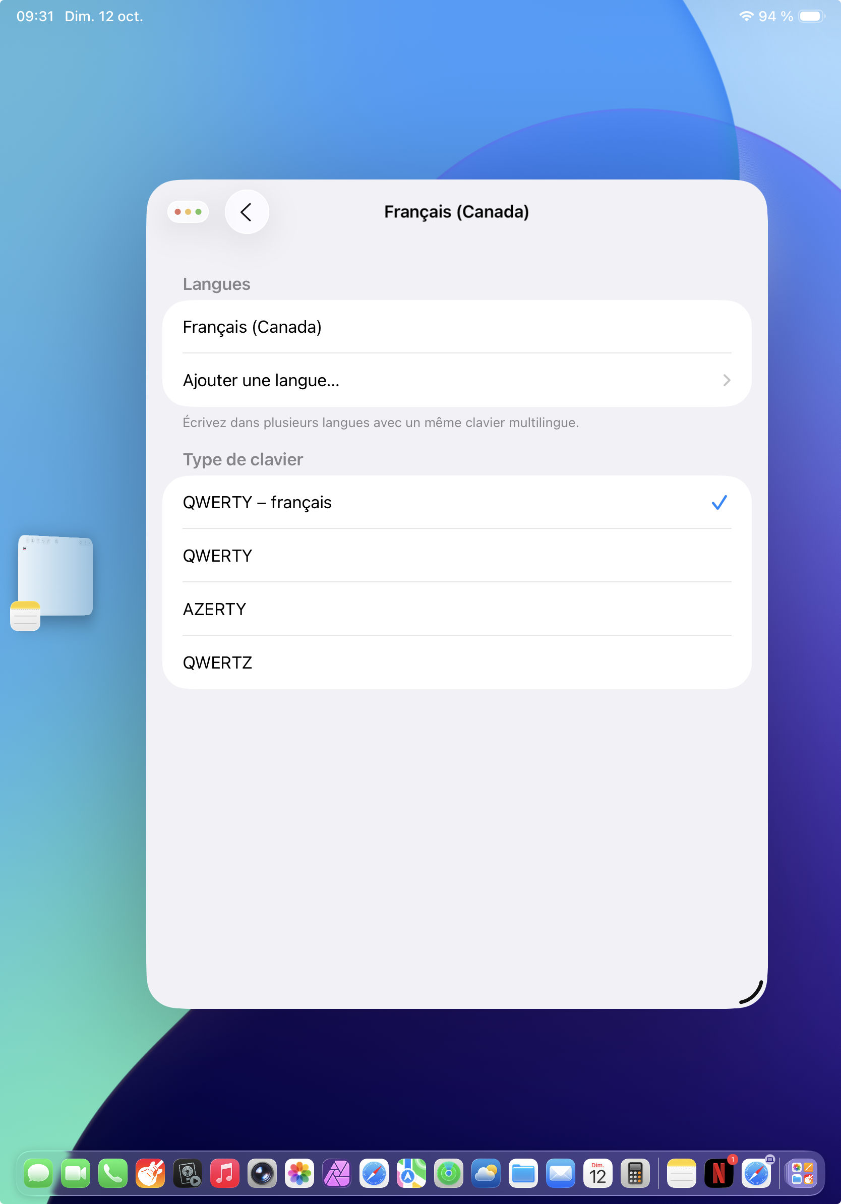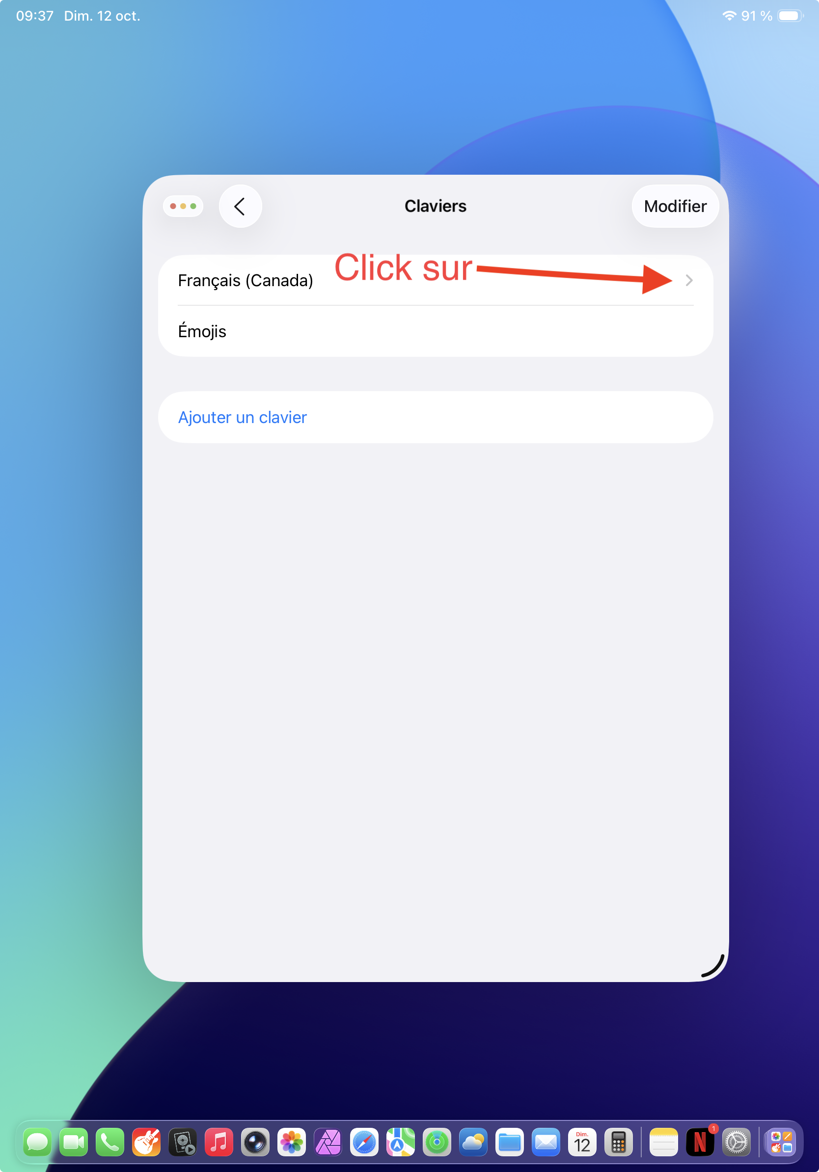 Donne les réglage du clavier et les clavier disponible avec l'option d'ajouter une langue