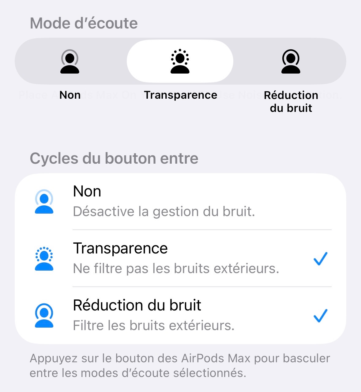 Ce que je trouve bizarre c’est que le mode Transparence et Réduction de bruit sont active en même temps, est ce que cela a un lien ?