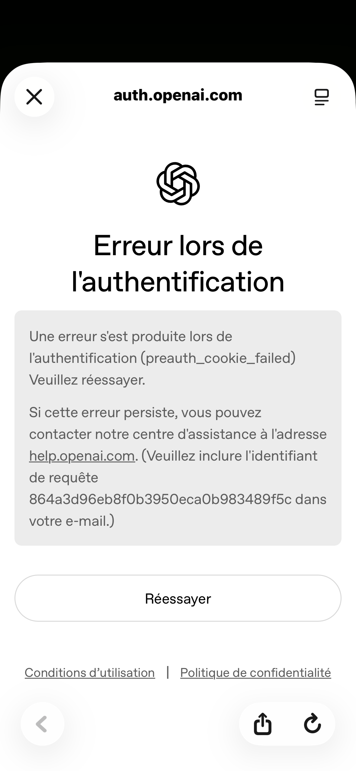 Bonjour après que j’ai installé Apple Intelligence sur mon iPhone 15pro , chatgpt n’accepte plus de se connecter, il y a un message d’erreur qui apparait dont j’ai pû capturer et le partager avec vous