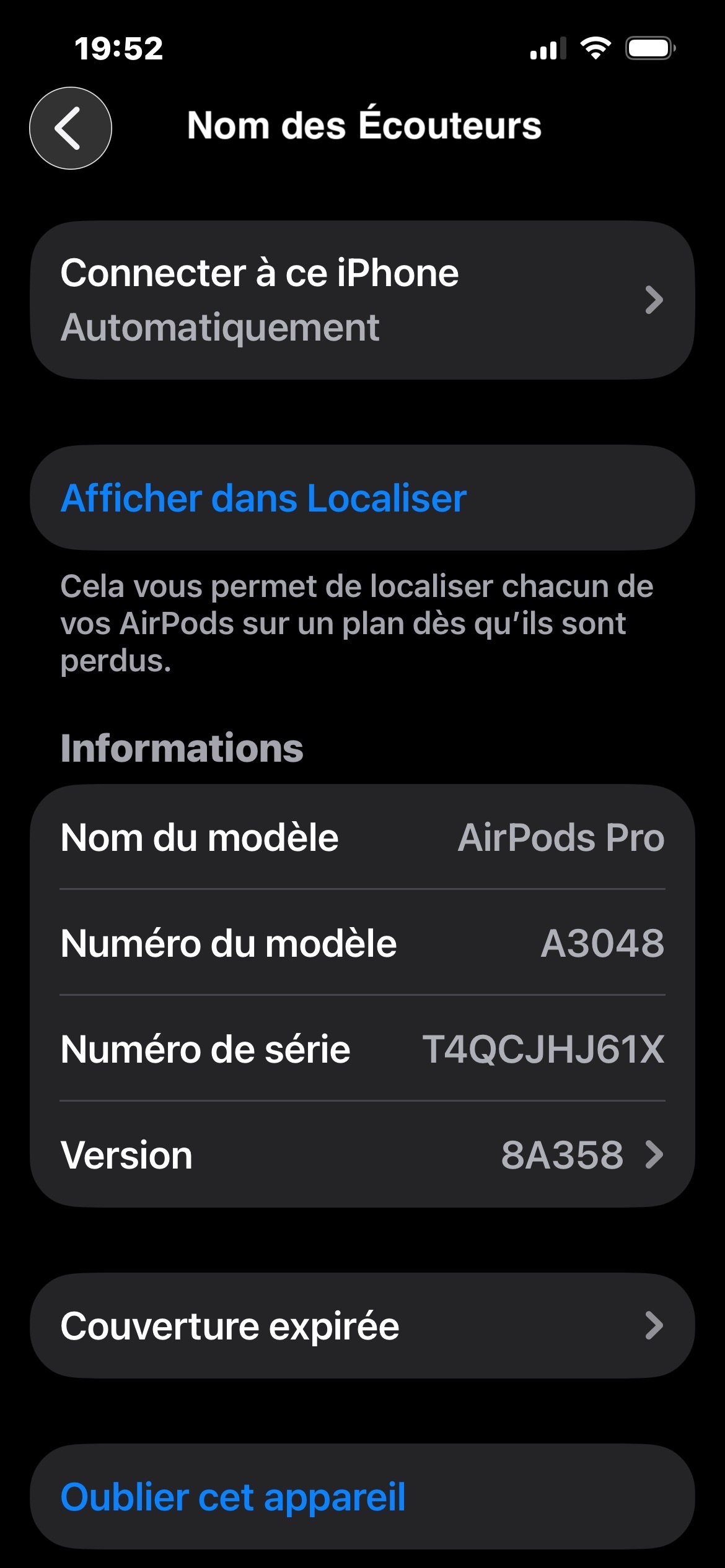D’abord, merci pour votre réponse. Lorsque j’arrive dans la fenêtre des AirPods, l’option localiser ne s’affiche même pas. J’ai donc essayé d’oublier l’appareil afin de les reconnecter, et toujours le même problème.