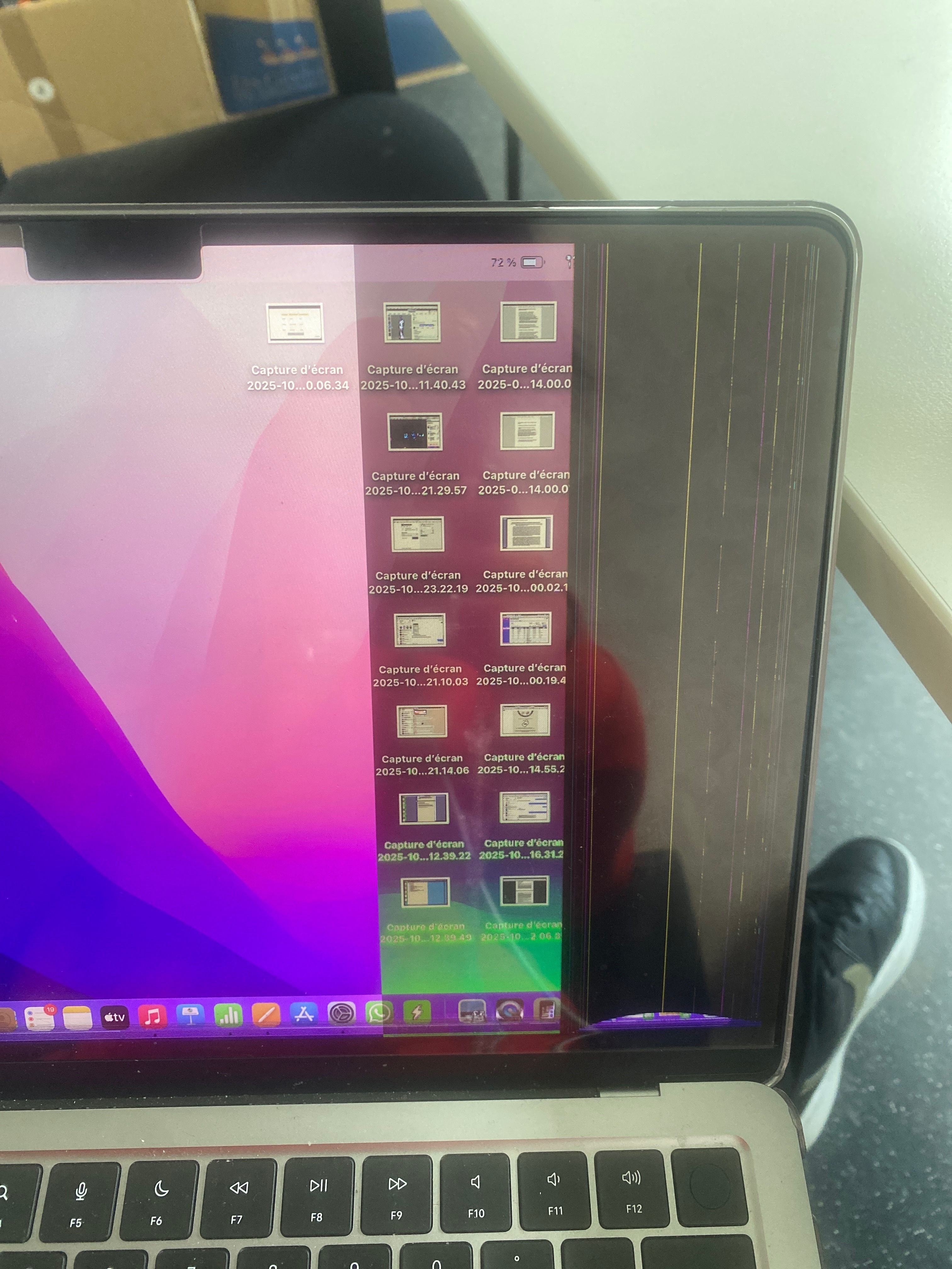 Un bande noir avec des lignes colorées est apparue sur mon MacBook alors que ce dernier a moins d’un an. Je ne comprend pas car il n’a reçu aucun choc, n’est jamais tombé et n’a pas été en contact avec un quelconque liquide ni de fortes températures…