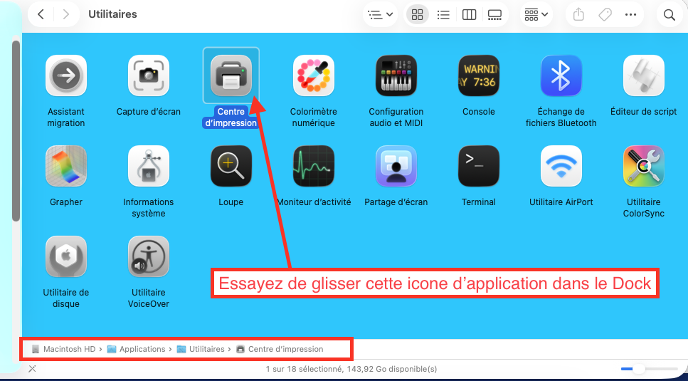 Trouver icône imprimante et l'ajouter au Dock Mac