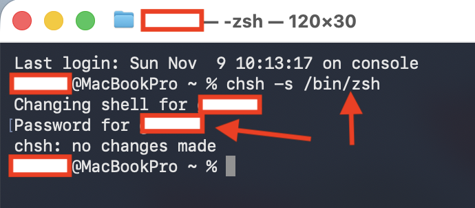 cette commande «chsh -s /bin/zsh» veut simplement retourné terminal sur le shell par défaut zsh cela pour le compte actuel