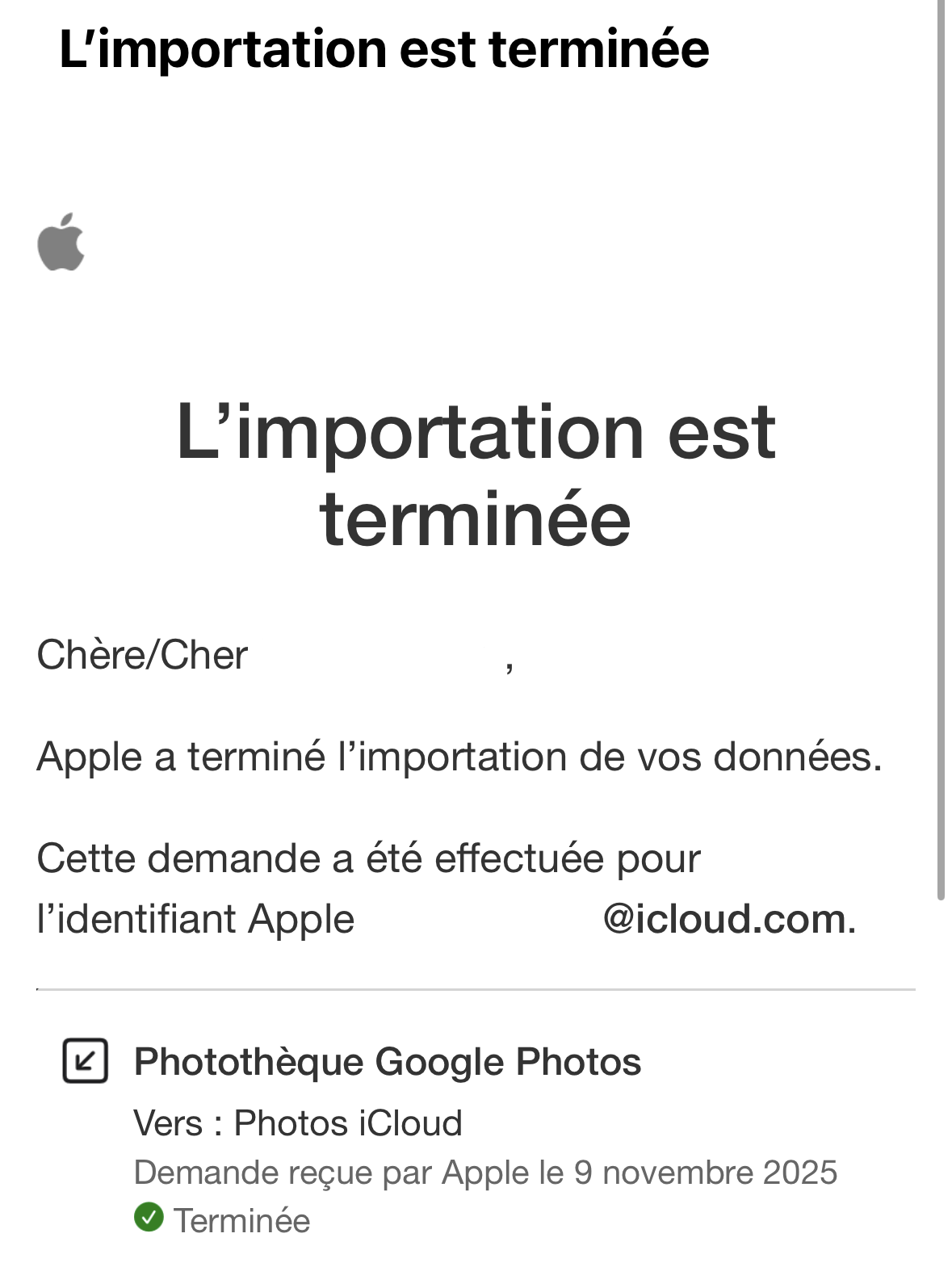 Problème de transfer de Google Photos (ANDROID) vers IPhone (15 ou 17Pro max)