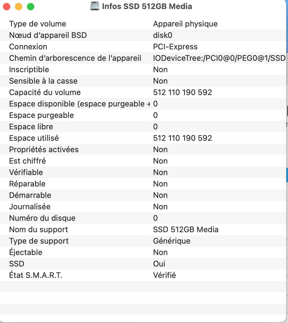 Bonjour, j'ai un macbook pro de 2016, mais je n'arrive pas à installer l'os Monterey. Quand je regarde l'utilitaire de disque, j'ai dans lordre: SSD 512 GB Média / conteneur disk 1 / Macintosh HD (grisé)/ com.apple. os. update / Macintosh HD donnés. Quand je clique sur infos, aucun n'est inscriptible, ni effaçable. Je ne sais quoi faire. Une idée serait la bienvenue.