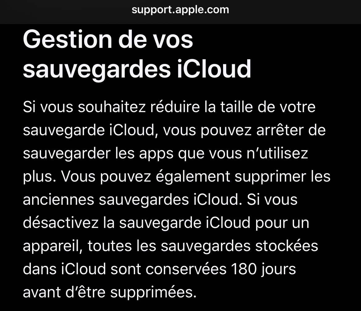 La sauvegarde de votre iPhone est conservée pendant 180 jours sur iCloud après résiliation