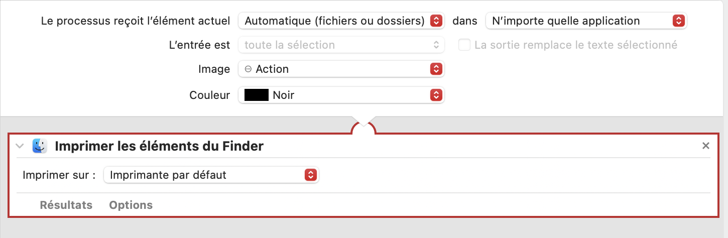 Glisse l'action dans la fenêtre de droite et sélectionne ton imprimante.