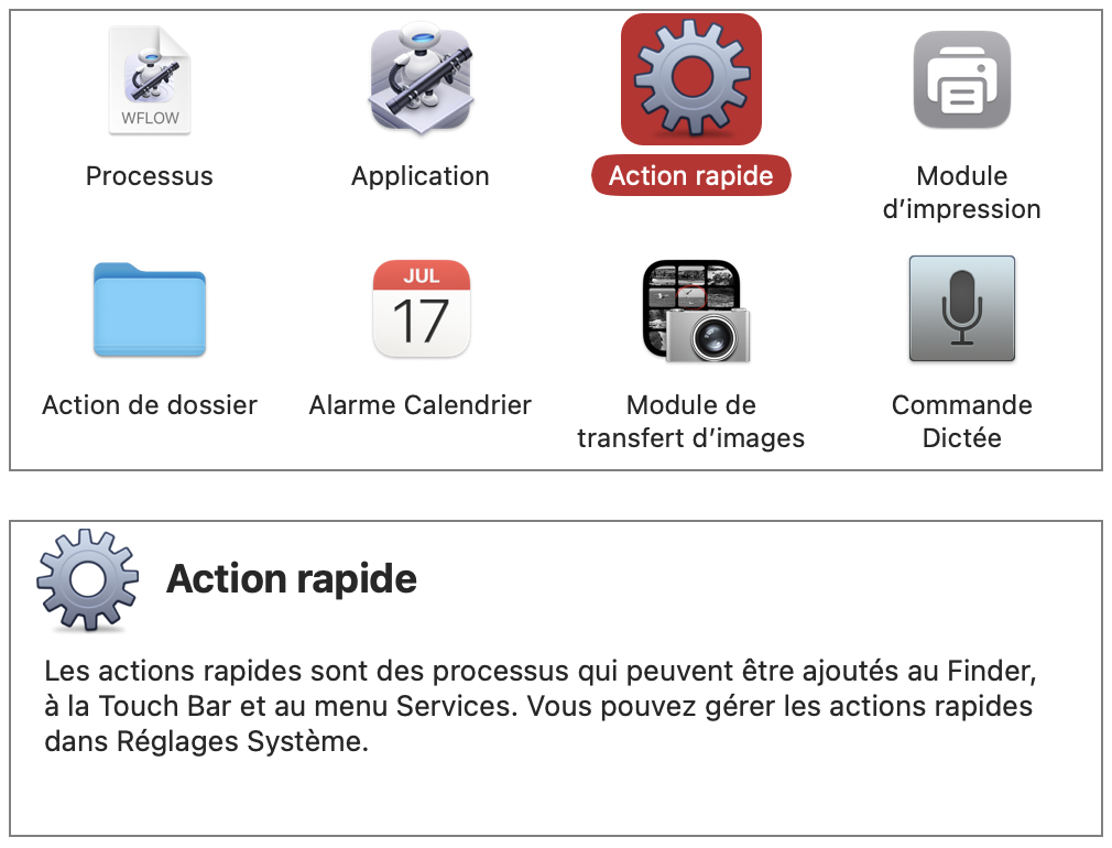 Ensuite, moi j'exporte l'élément sur le bureau et j'installe l'action.