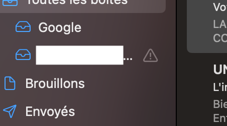 apparition d'un point d'exclamation dans un triangle sur le coté de ma boite mail google dans mail