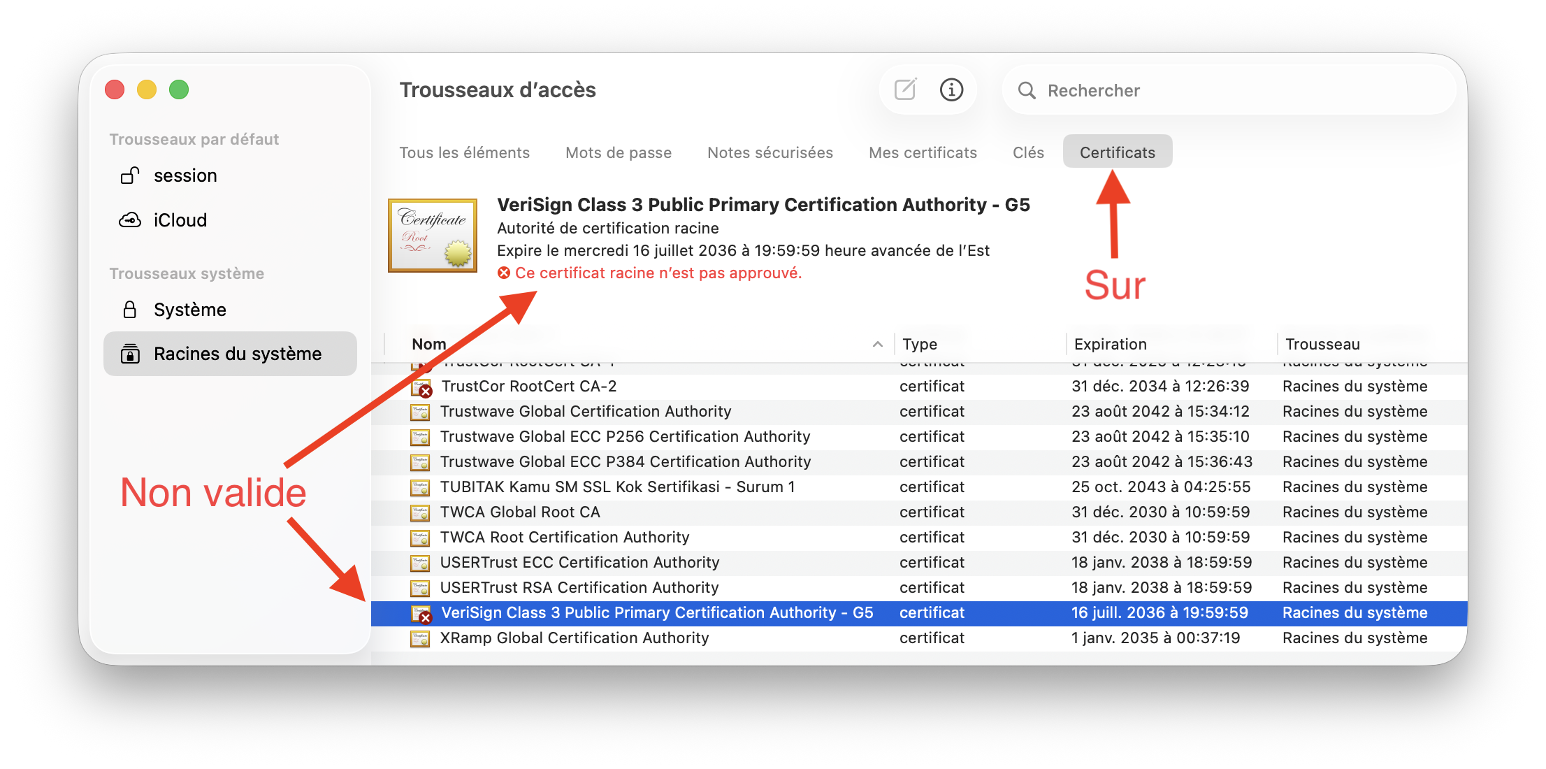 En dernier recourt vous pouvez ouvrir l'application «Trousseaux d'accès» sous la section Certificat et vérifier si un certificat valide est disponible pour votre imprimante car certains certificat ne sont pas approuvés