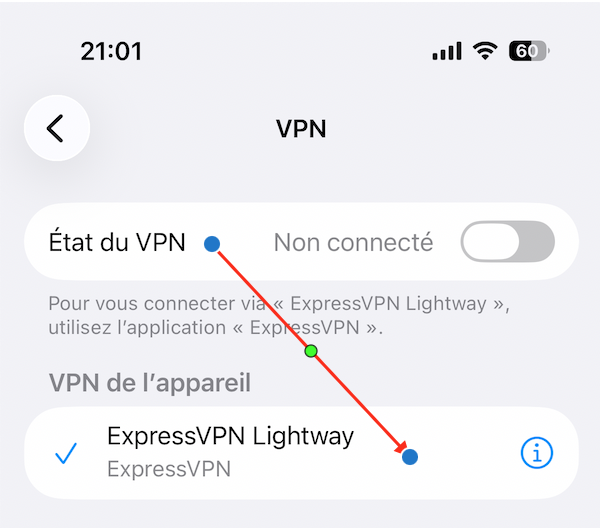Réglages>Général>VPN et gestion de l'appareil>VPN >supprimer le profil éventuel