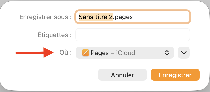 Et lors d'une commande d'enregistrement dans un document Pages et crée sur un MacBook Pro