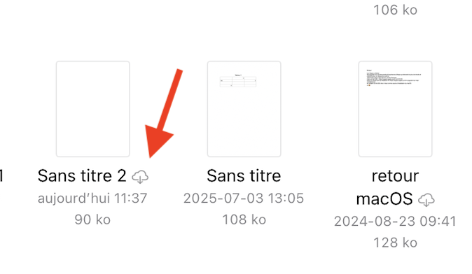 Un fichier que je retrouve sur mon iPad dans l'application Fichier dans le Répertoire «iCloud Drive - Pages» avec un petit nuage qui m' indique que je peut l'utilisé dans Pages sur l'iPad après un téléchargement en local
