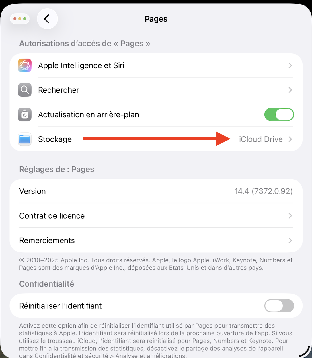 Néanmoins, en tentant d’ouvrir ledit document sur mon iPhone, cela fonctionne. Dans l’application Fichier de mon iPad, le document s’ouvre également mais impossible de le modifier avec Pages.
