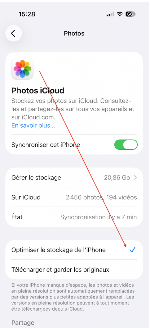Je souhaiterais savoir comment faire pour que mes photos iCloud se re-synchronisent et réapparaissent sur mon iPhone.