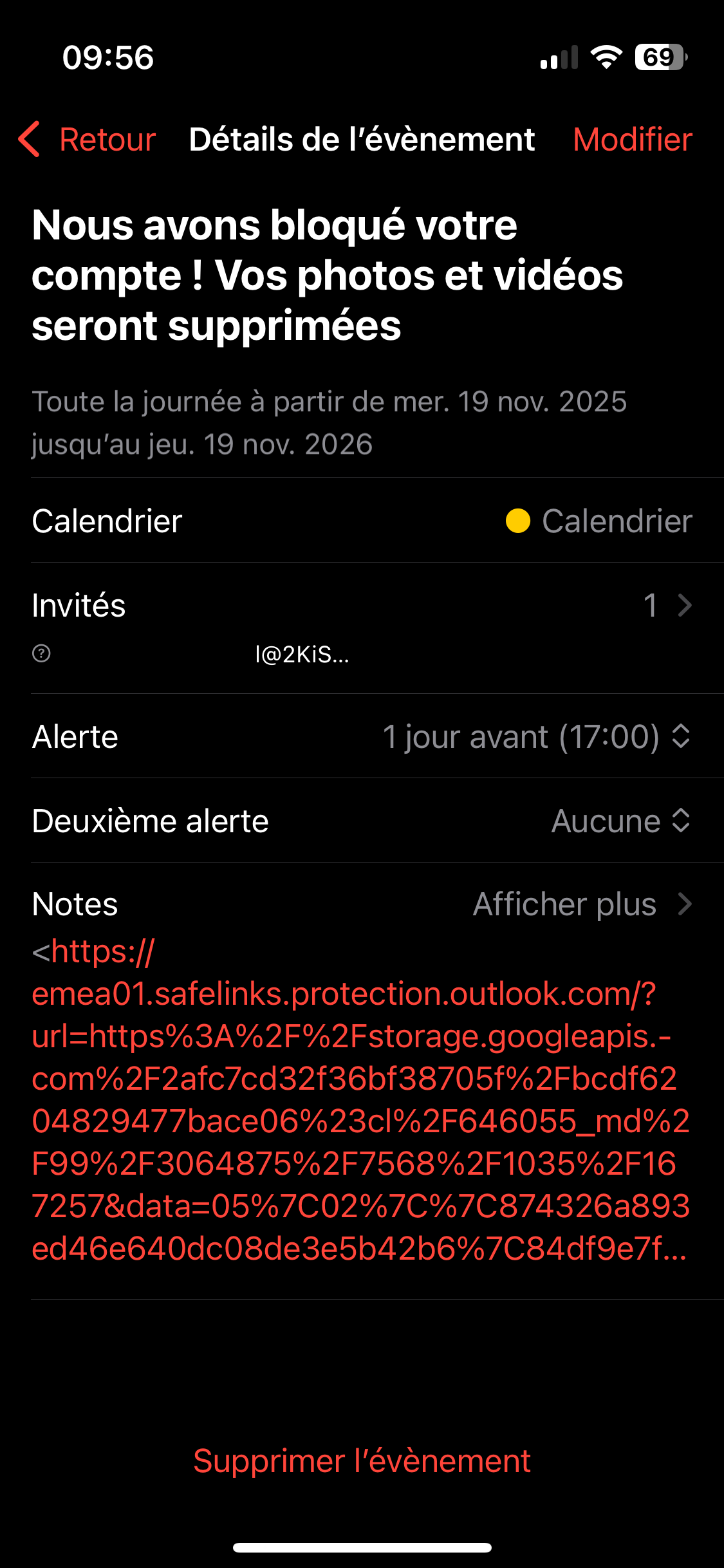 Bonjour, comment puis-je bloquer définitivement un évènement sur mon calendrier ou son expéditeur. J'avais déjà supprimer cet évènement frauduleux mais il vient de revenir.