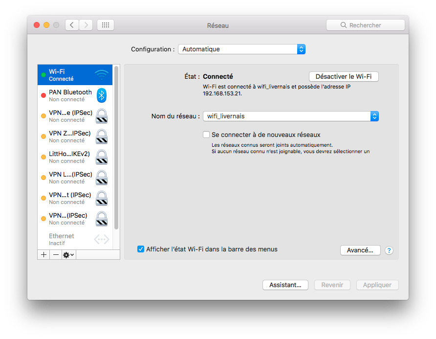 Les postes clients comme les MacBook ont 2 réservations avec chacun leur IP : une pour le réseau filaire et une autre pour le réseau wifi.