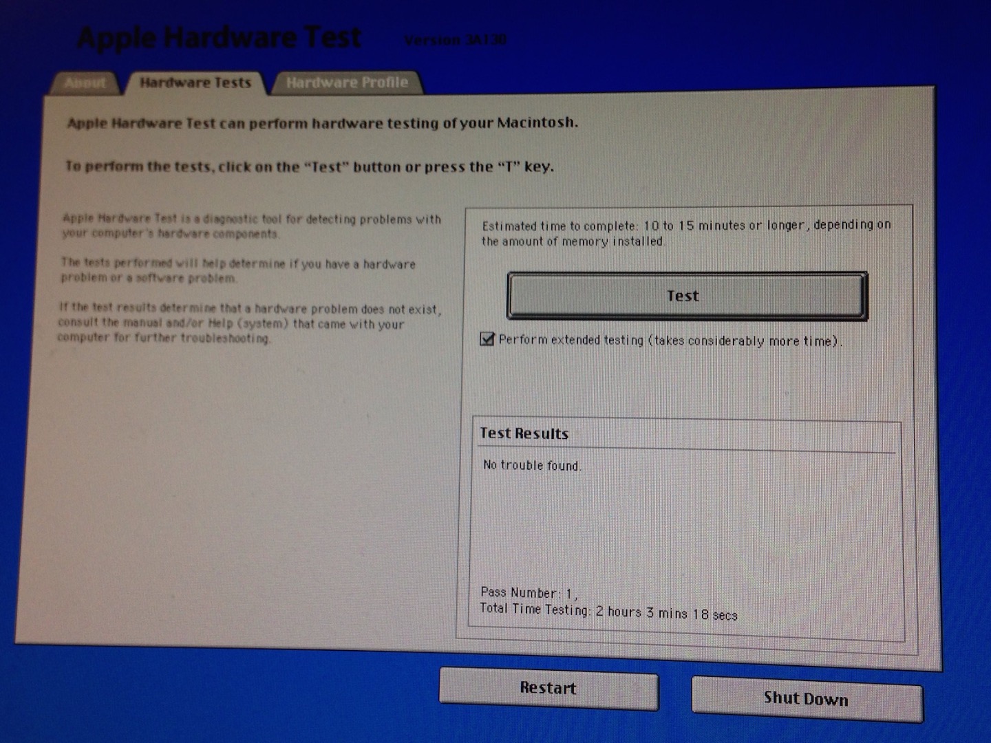 Você pode usar Apple Hardware Test, tecla D ao ligar https://support.apple.com/kb/PH25696?viewlocale=en_US&locale=en_US mas você precisa ativar para fazer o teste extenso, ao final ele te dirá se está tudo OK com: AirPort, Logic Board, Mass Storage, Memory, Modem, Video RAM