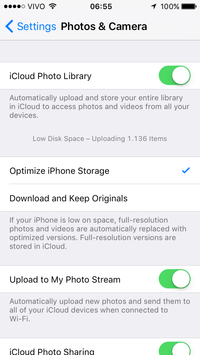 Obrigado pelos screenshots. Como imaginei. Está vendo que ele está com pouco espaço em disco e está tentando enviar 1.136 arquivos para seu iCloud?