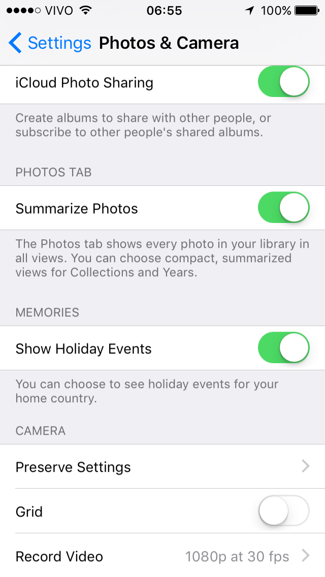 Poderia mandar um screenshot do seu aparelho com as configurações do seu Fotos em seu iPhone?