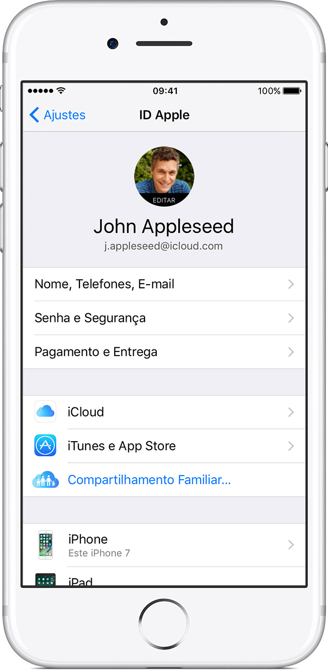 Verifique qual ID Apple o dispositivo está usando em Ajustes ou "Preferências do Sistema". Você verá o nome e endereço de e-mail. O endereço de e-mail é seu ID Apple.