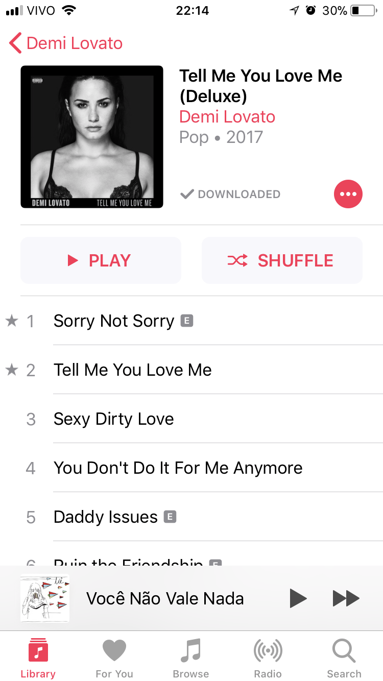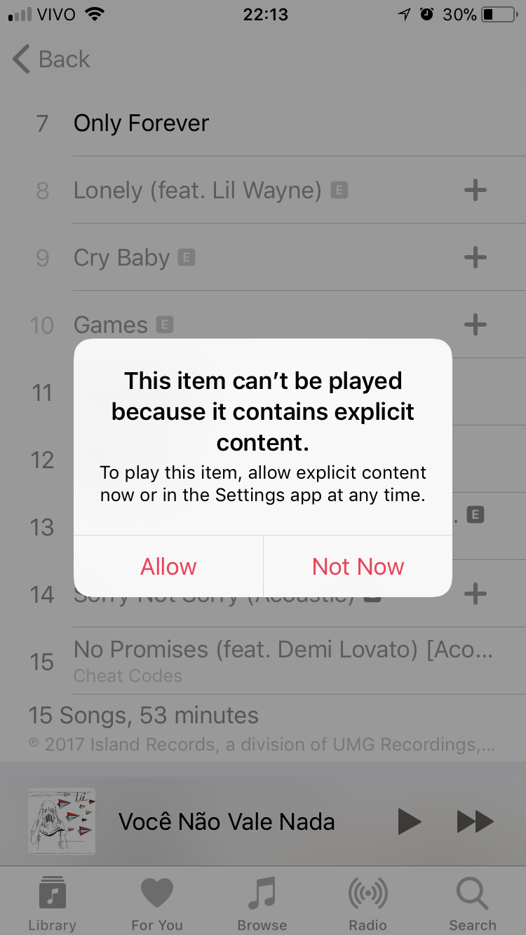Eu tive o maior trabalho pra baixar minhas musicas favoritas que eu tinha em um outro serviço de streaming. Mas quando estou off-line e vou procurar minhas musicas, percebo que elas estão faltando! Então tenho que ficar online e baixá-las novamente. Isso é horrível!! Notei que em alguns casos, tenho que permitir conteúdo explícito. Mas todas vez clico em permitir, mas com o tempo as musicas somem novamente.