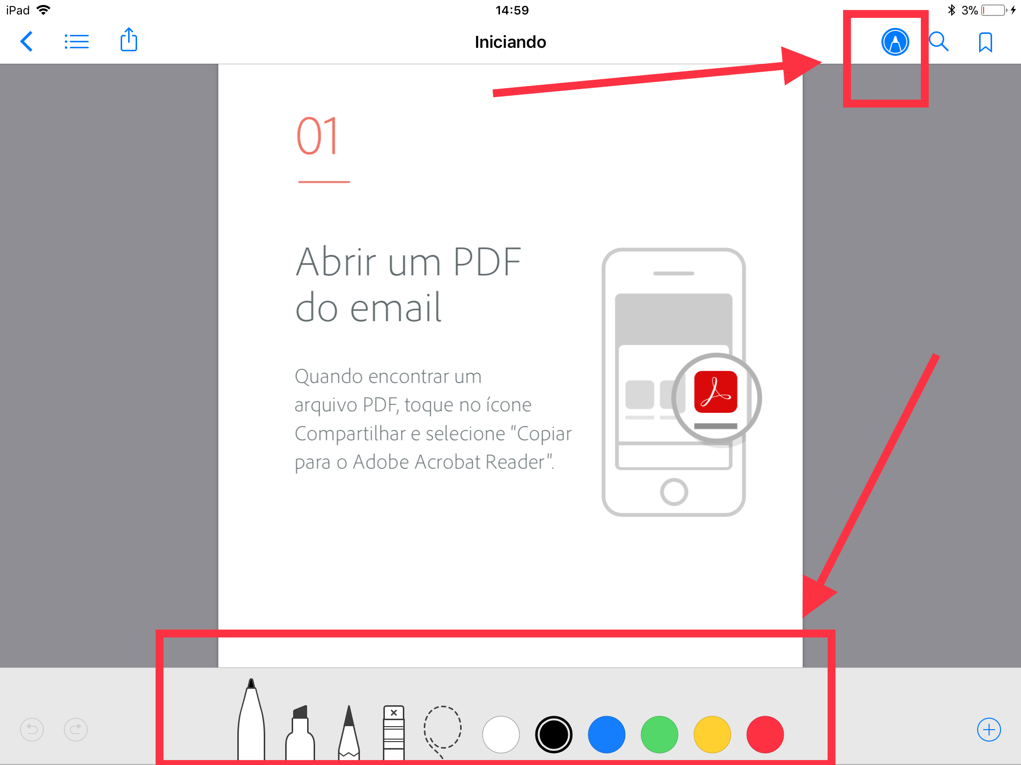 No iBooks tem algumas ferramentas que aparecem ao clicar no lápis no canto superior e depois na barra inferior