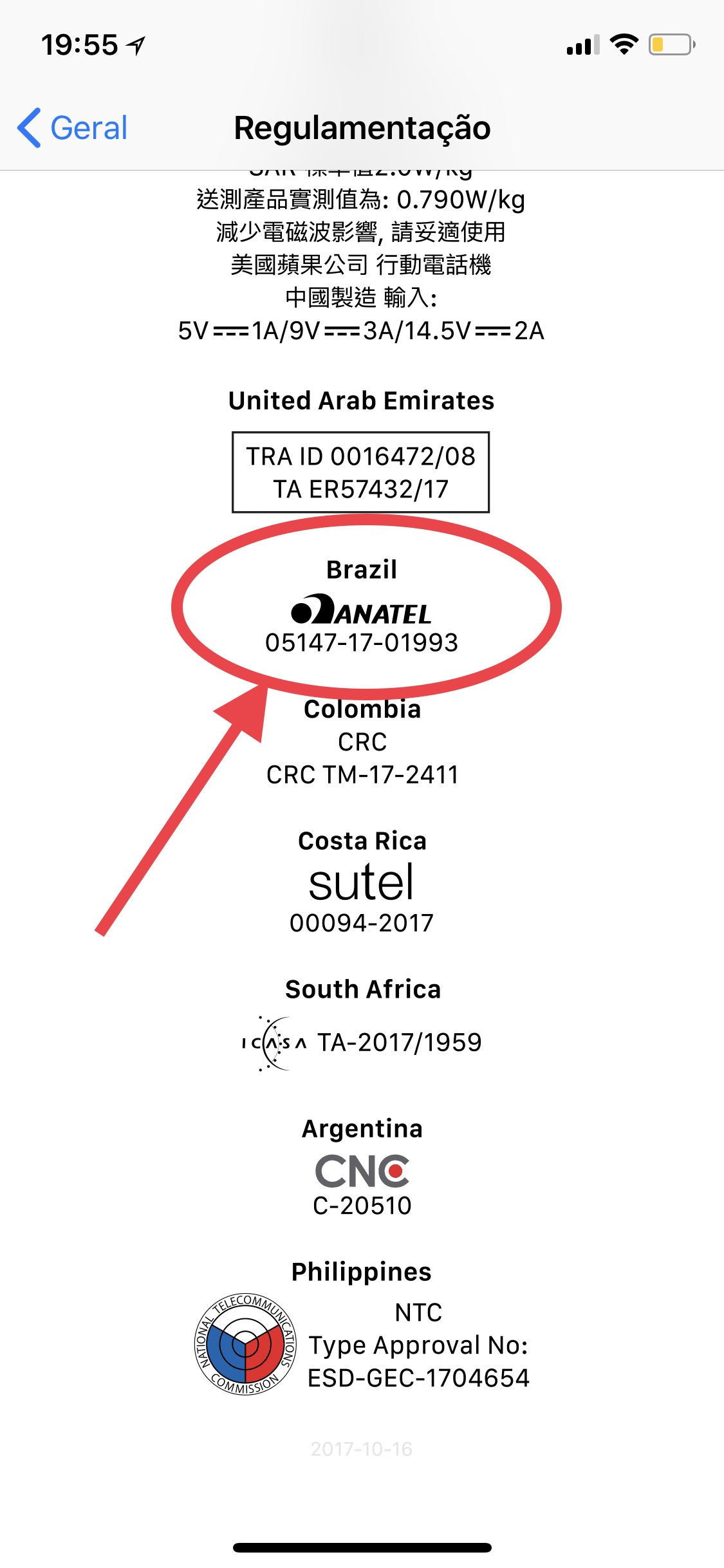 Na hora da compra, tem que verificar o modelo, pois eles tem modelos com restrições (por exemplo, se comprar o modelo errado em Dubai, não vai ter o Face Time, foi o que o atendente informou, pois é bloqueado em Dubai). Para decidir sua compra, procure o selo da Anatel na configuração do aparelho - Ajustes / Geral / Regulamentação, isso vai lhe dar mais segurança . Veja as imagens que tirei com o meu iPhone X.