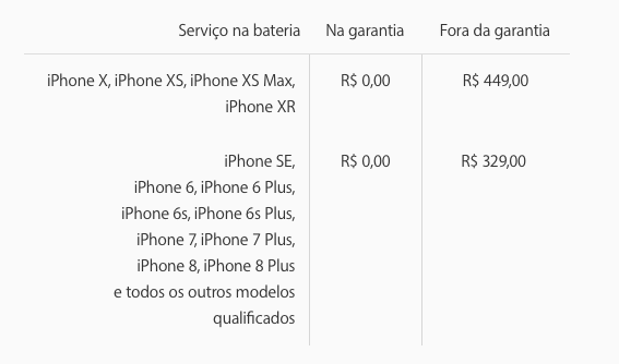 Valores para reparo