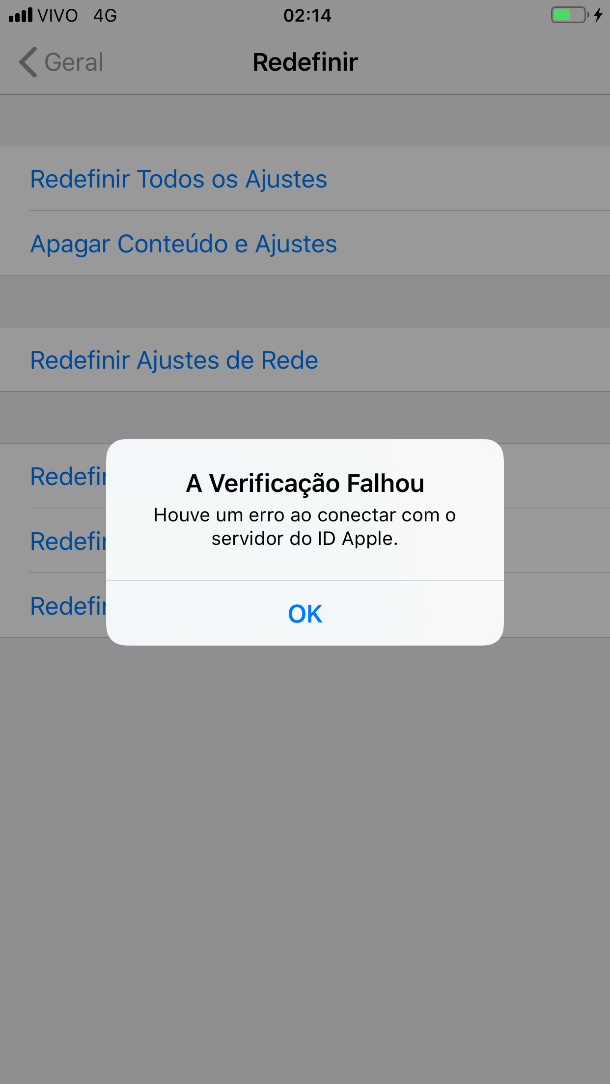 Não consigo apagar conteúdos e ajustes do meu antigo iPhone, aparece a seguinte mensagem: