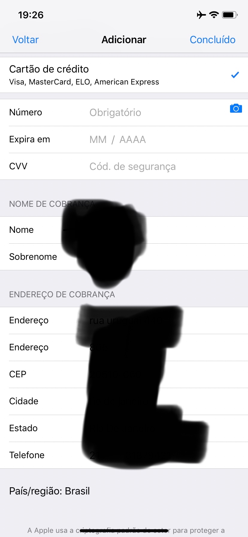 Boa tarde. Não consigo baixar mais nada na apple por necessitar cadastrar o cpf, , no entanto não há campo nenhum para preenchimento. Só consigo cadastrar o cartão, endereço, tel etc. Mas a msg pedindo o cpf volta a aparecer. Alguém pode ajudar? Grata