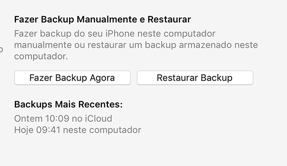 Depois disso, com o aparelho já conectado ao computador através do cabo USB, abra o iTunes e certifique-se de ter um backup deste dispositivo em ''Backups Mais Recentes'':