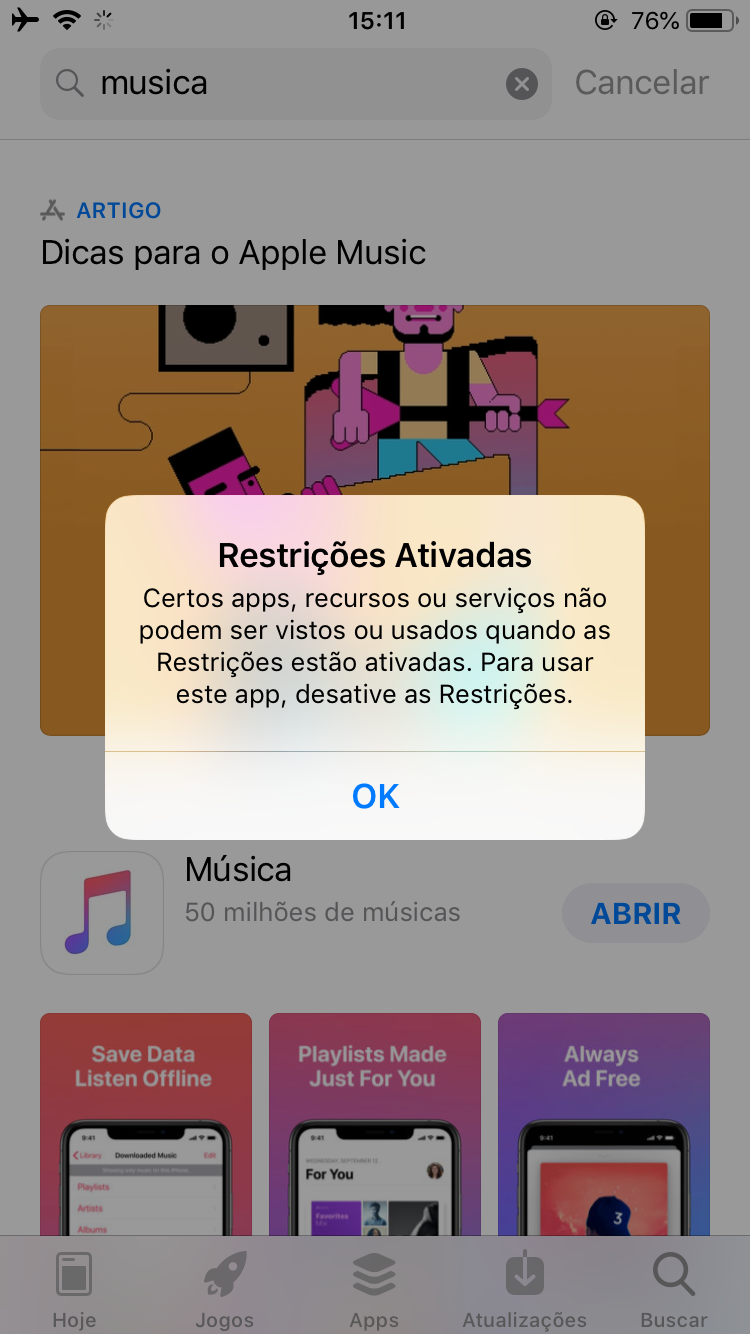 Não consigo abrir meu Apple Music