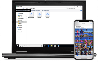 No canto inferir do windows, aonde fica o relógio tem o iCloud para windows e la que voce ira configurar para as fotos serem feito do download do iCloud para o seu PC window