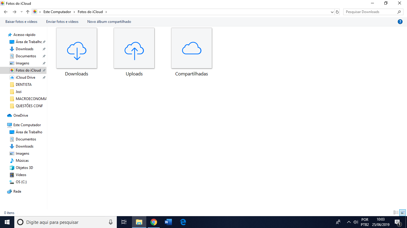 Não aparece a opção "transferir". Quando abro o "fotos do iCloud" só aparece downloads e uploads, ambas pastas vazias.