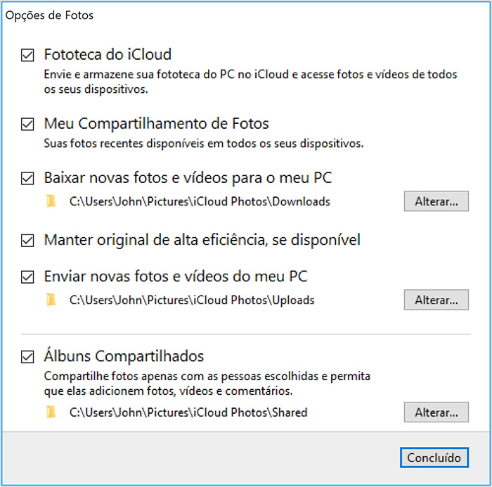 Configurar e usar o Fotos do iCloud no PC com Windows